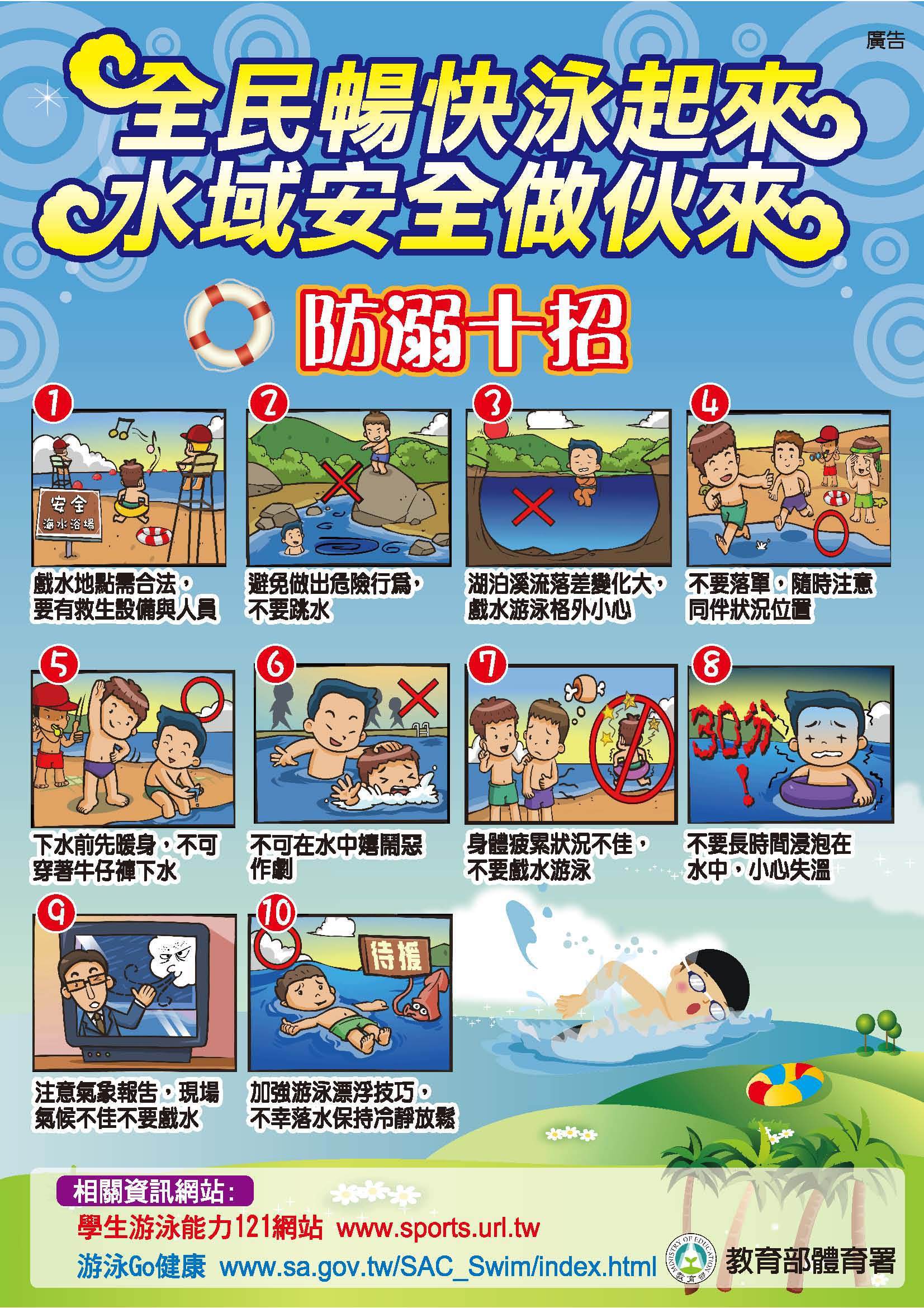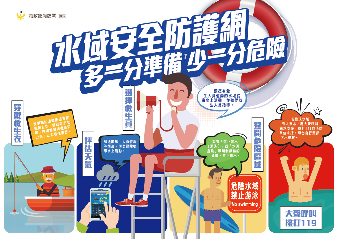 2.選擇有救生人員值勤的水域從事水上活動,並聽從救生人員指導。